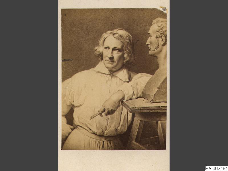 Visitkortsfotografi. Fotografi av en målning. Porträtt av den dansk - isländske skulptören Bertel Thorvaldsen.