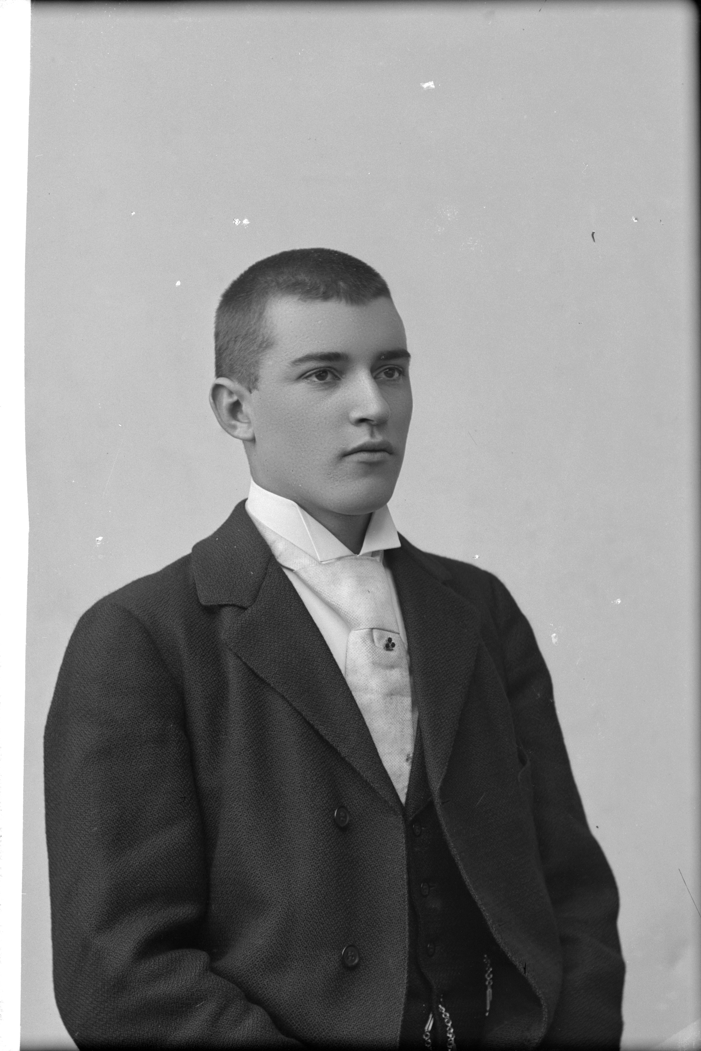 Porträtt i halvfigur av Hjalmar Persson, student på Hvilan.