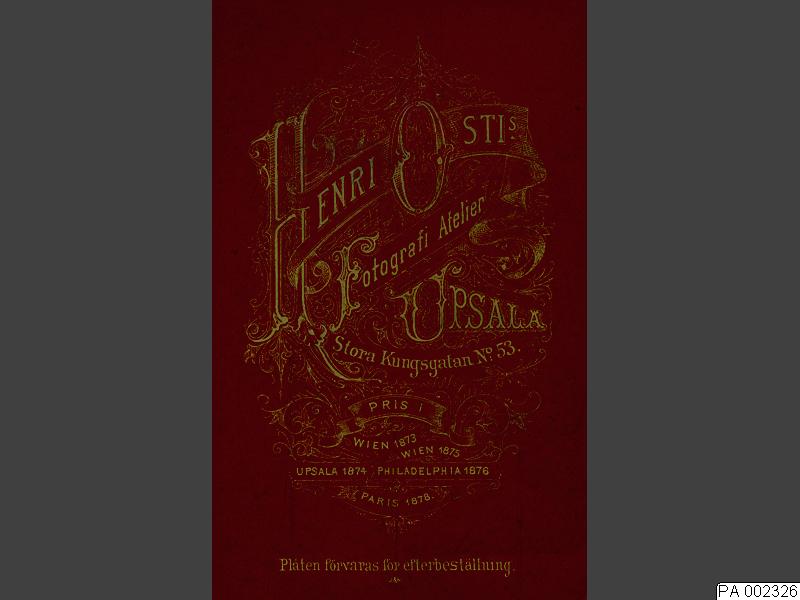 Lambert, Lars (2011): 1800-talets Uppsala i Ostis bilder. Uppsala: Kornhuset., Montelius, Jan-Olof (1974). "Uppsalafotografen Ostis negativsamling". Årsboken Uppland 1974, sid. 117 ff., Björnemalm, Barbro (2009). "Samla på Uppland - de första 50 åren". Årsboken Uppland 2009, sid 21 ff.