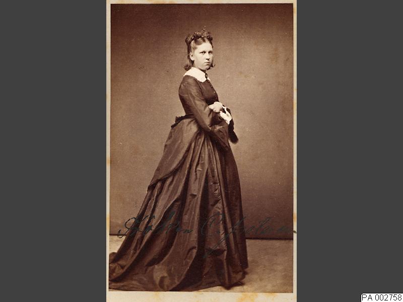 Visitkortsfotografi. Porträtt av en kvinna som heter C. Pettersson.
