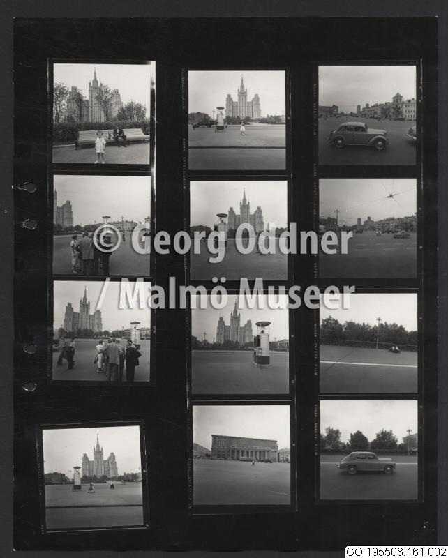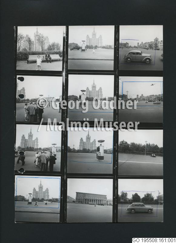 GO 195508:161 :: bil, fordon, grupporträtt, mansporträtt, stadsbebyggelse, stadsgata, storstäder, undervisning, universitet, barn