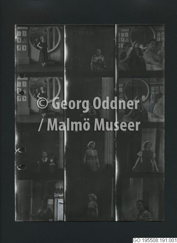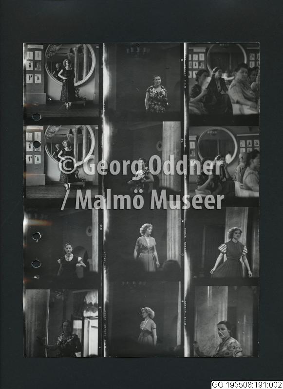 GO 195508:191 :: grupporträtt, klänning, kvinnoporträtt, mode, modell, modevisning, nöje, publik, spegel, storstäder, underhållning