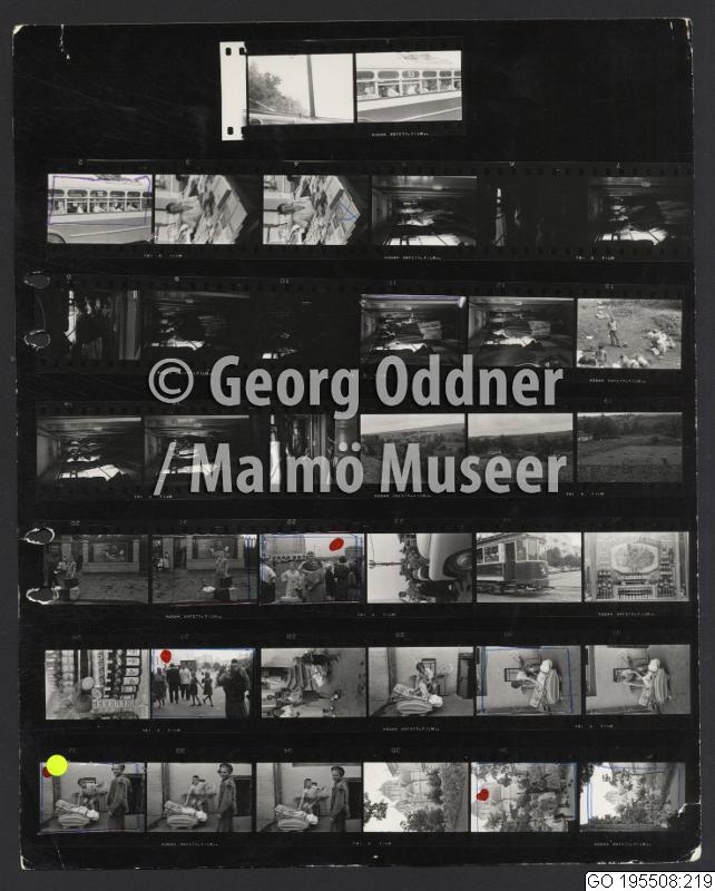 GO 195508:219 :: barnporträtt, barnvagn, buss, byggnad, flicka, kontor, kontorist, kupol, kvinnoporträtt, man, pojke, reklam, resande, resväska, spädbarn, stadsbebyggelse, storstäder, tåg