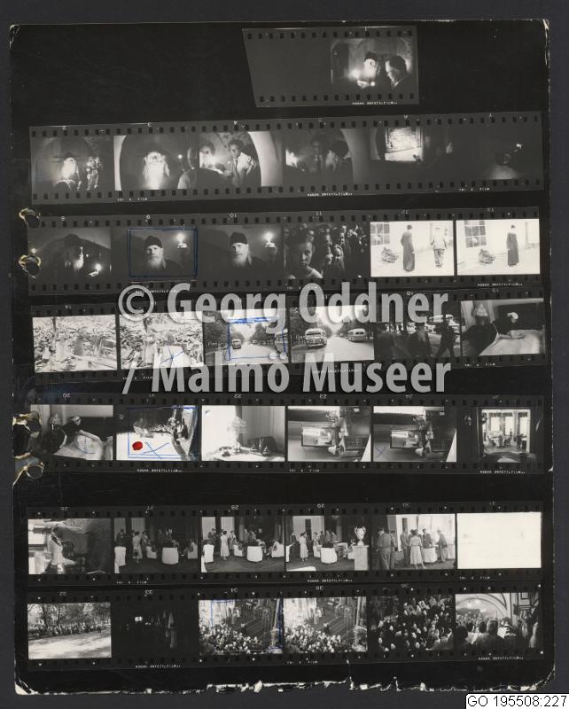 GO 195508:227 :: buss, grupporträtt, hotell, hotellpersonal, interiör, kyrka, mansporträtt, resande, sittmöbel, stadsgata, storstäder, sågverk, turism, kvinnoporträtt
