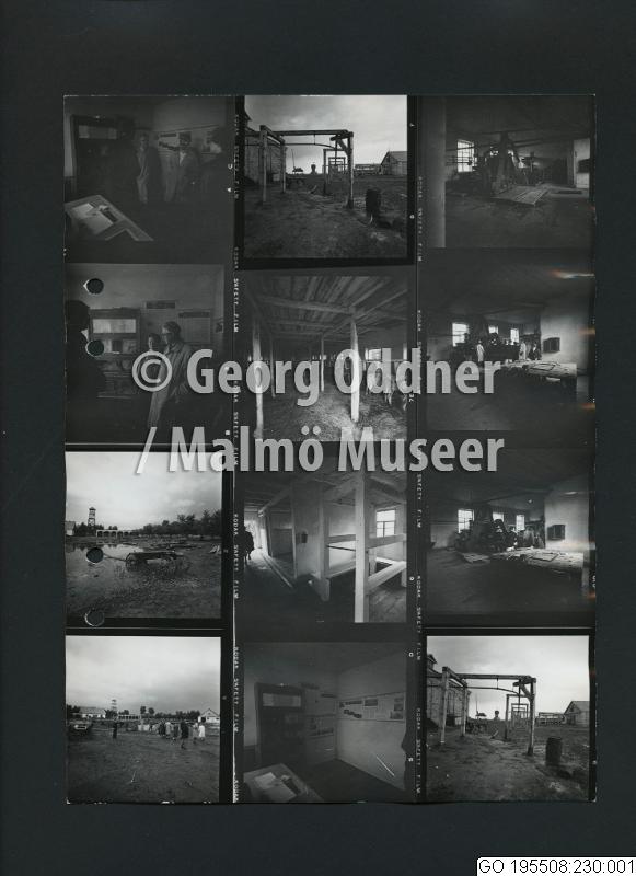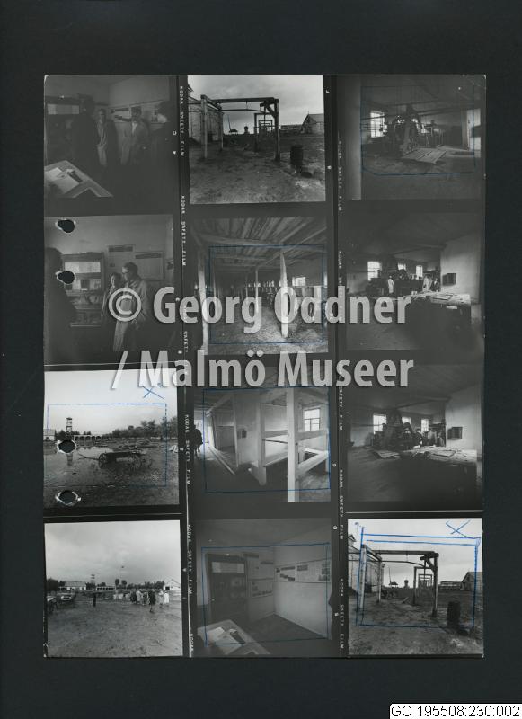 GO 195508:230 :: bondgård, jordbruk, jordbruksredskap, ko, ladugård, monter, timmer, torn, uthus, utsiktstorn, vagn