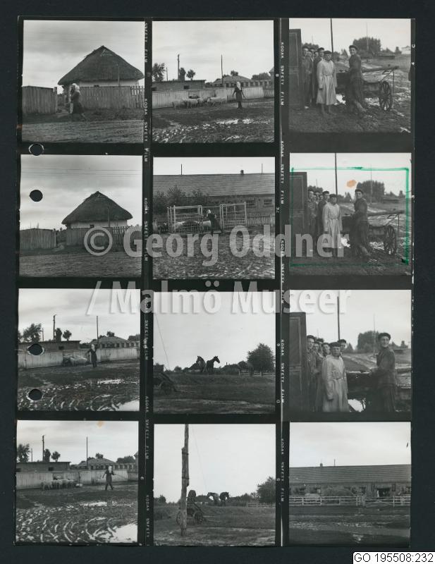 GO 195508:232 :: grupporträtt, jordbruk, pojke, uthus, vagn