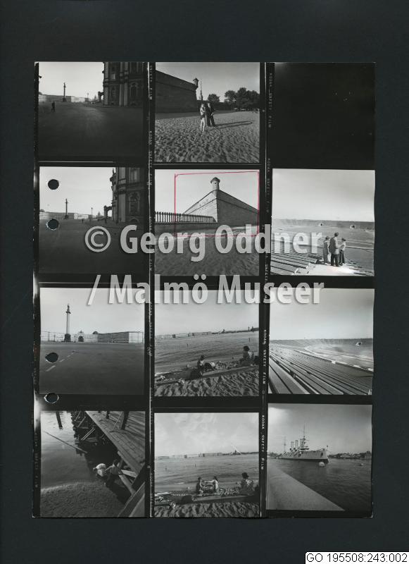 GO 195508:243 :: bikini, byggnad, flicka, grupporträtt, monument, pelare, pojke, staty, storstäder, strand, ungdom, valv