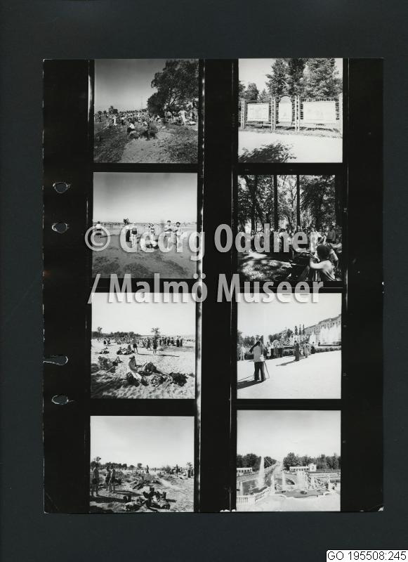 GO 195508:245 :: baddräkt, badplats, byggnad, flicka, folksamling, fontän, fotograf, fotografering, grupporträtt, information, kvinna, man, park, pojke, reklam, skulptur, strand, ungdom, storstäder