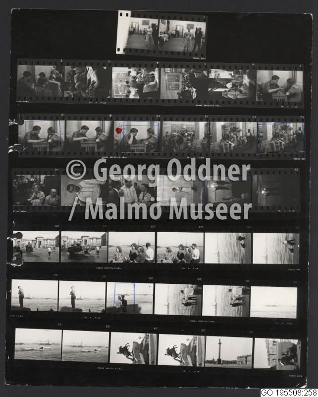 GO 195508:258 :: armatur, belysning, bildkonst, dräkt, flicka, flod, grupporträtt, interiör, kanalbåt, pojke, schack, sittmöbel, spel, stadsbebyggelse, stege, storstäder, tavla, ungdom, uniform