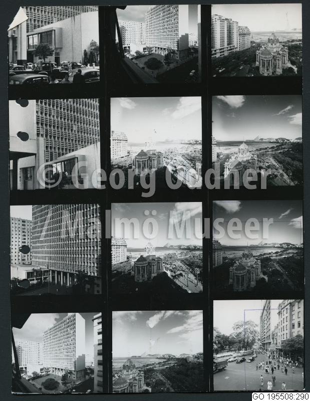 GO 195508:290 :: berg, bil, bostadshus, buss, folksamling, kyrka, park, stadsgata, stadstrafik, storstäder