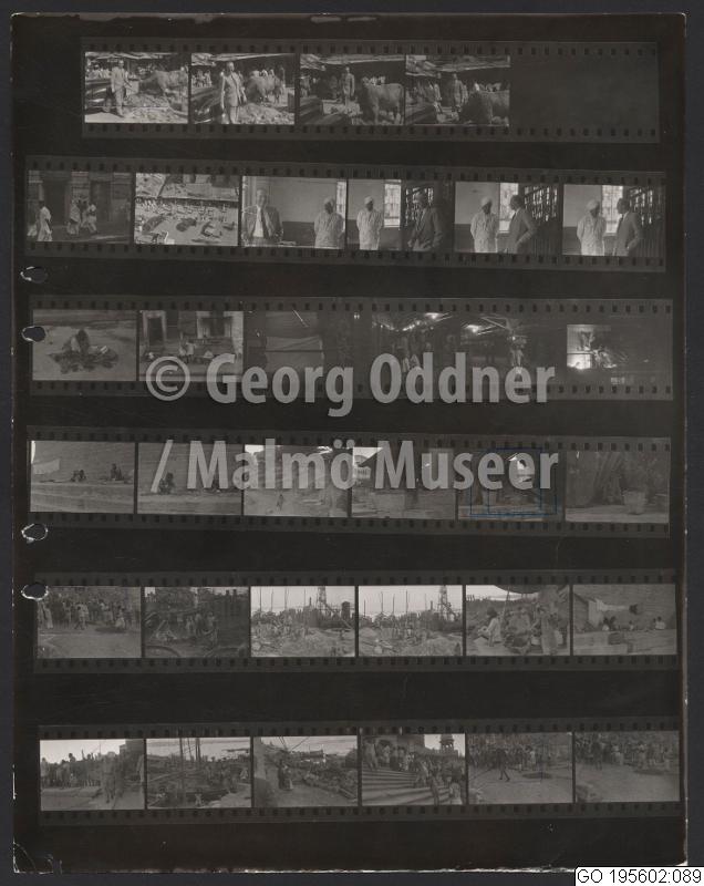 GO 195602:089 :: barn, blomkruka, bostad, byggnad, fattigdom, folksamling, grupporträtt, ko, kvinna, man, marknad, flod, storstäder