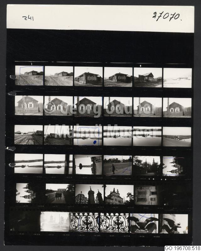GO 196708:518 :: bostad, byggnad, bärdon, grind, mansporträtt, motorcykel, ok, sjö, skulptur, smide, stuga