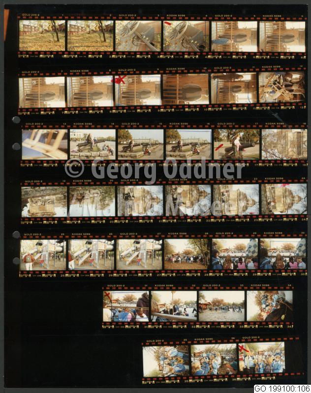 GO 199100:106 :: barn, dansbana, kvinna, kärra, lekplats, man, museum, restaurang, snickeriverkstad