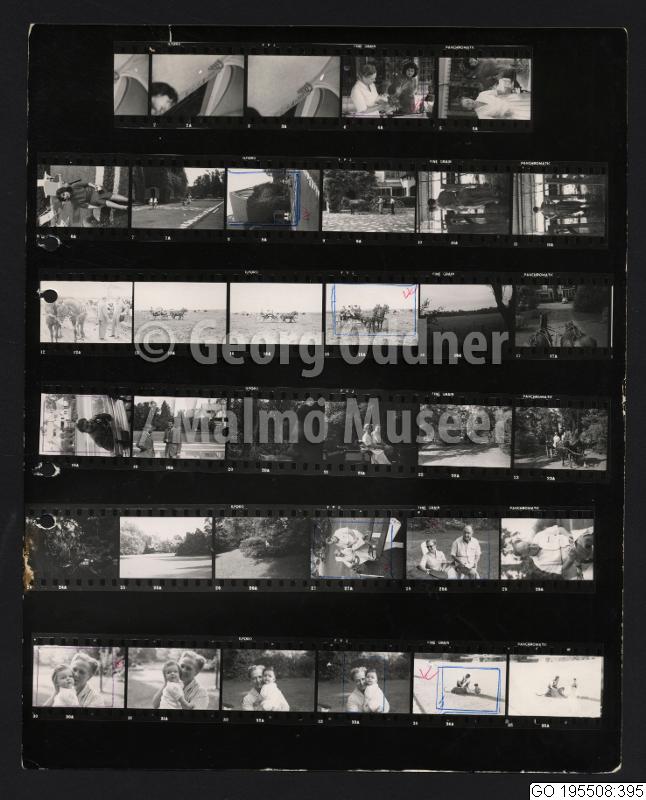 GO 195508:395 :: barn, gods, grupporträtt, hund, kvinna, man, mansporträtt, park, tomt, trädgård, häst, ko