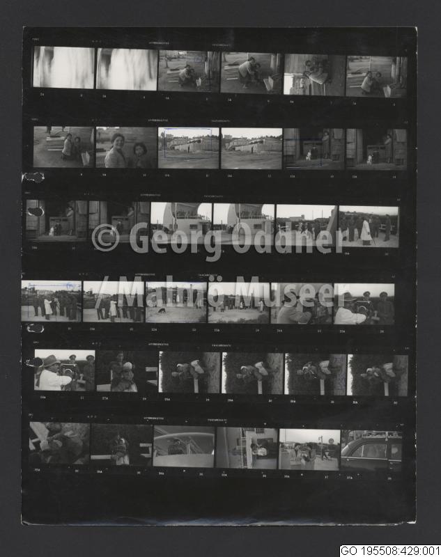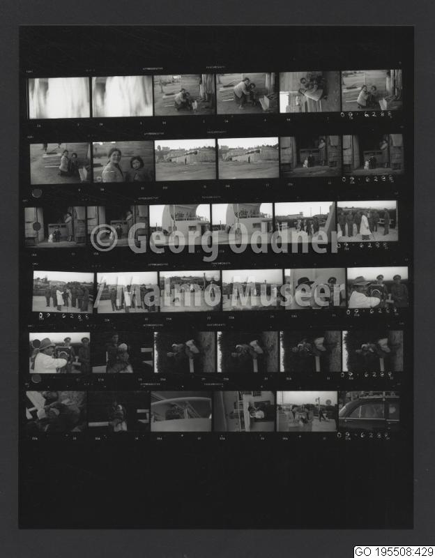 GO 195508:429 :: barn, bostäder, fotograf, fotografering, grupporträtt, hund, kamera, kvinna, man, militäruniform, staket