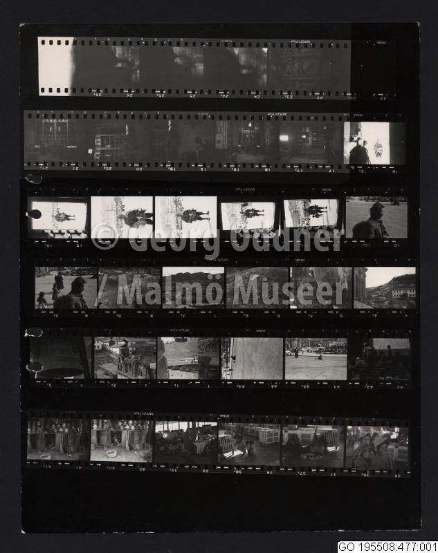 GO 195508:477 :: berg, byggnader, flicka, försäljning, hatt, man, marknad, skulptur, stad, staty, torg