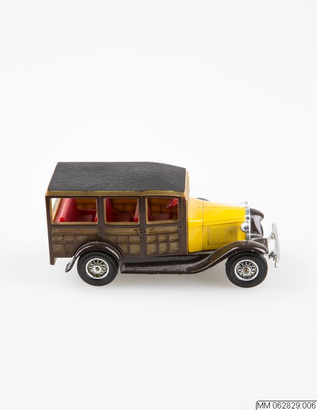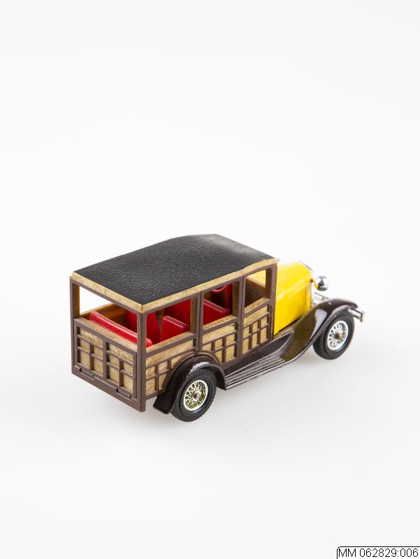 Leksaksbil, brun och gul.