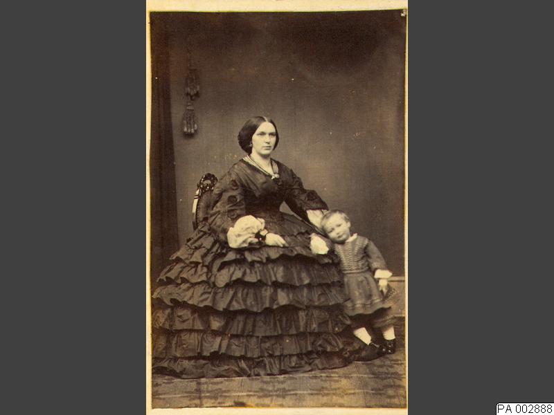 Visitkortsfotografi. Porträtt av Agneta Kockum, gift von Seth, med sonen Johan.