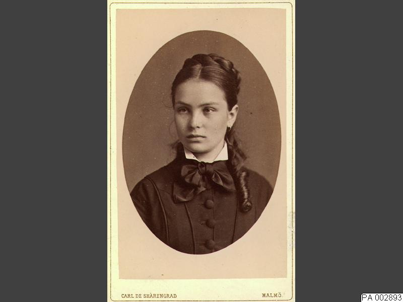 Visitkortsfotografi. Porträtt av Gerda Petersson, gift Berling, som ung kvinna.