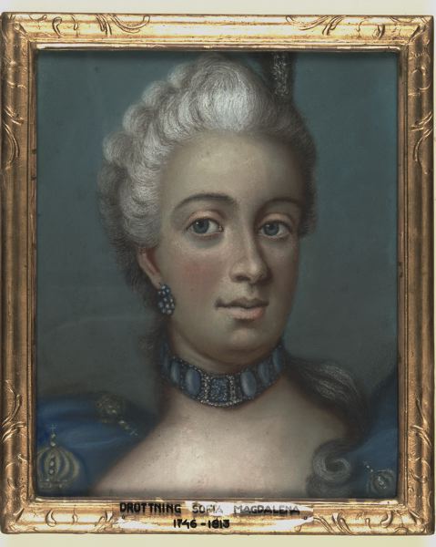 - Porträtt av Sofia Magdalena, brb. nath.storlek, pastell, osig. möjligen av Gustaf Lundberg (1695 - 1786). Inköpt på auktion i Köpenhamn efter godsägaren Henning Persson, bordig från Helsingborg, där pårträtten såldes på auktion efter grevinnan Stenbock.