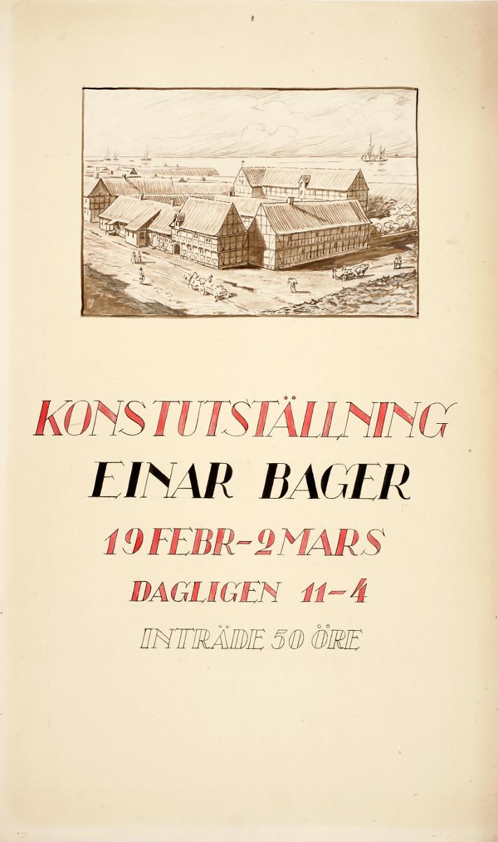 med versaler: "Konstutställning, Einar Bager, 19 febr - 2 mars,
