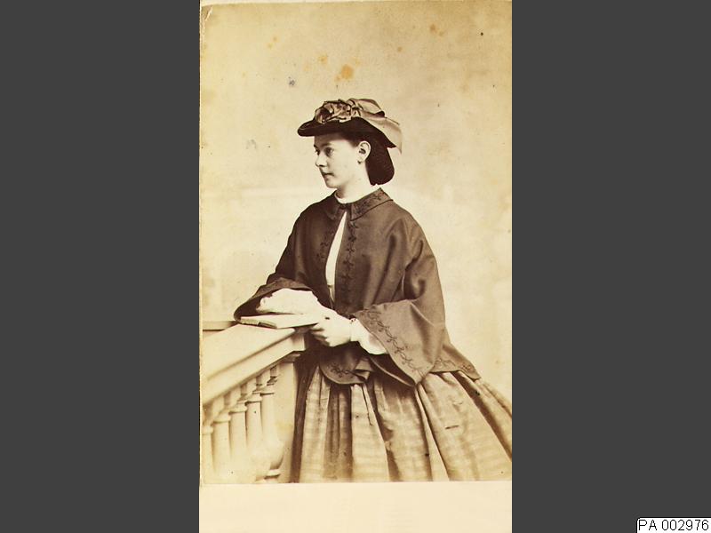 PA 002976 :: kvinna, damhatt, balustrad, klänning