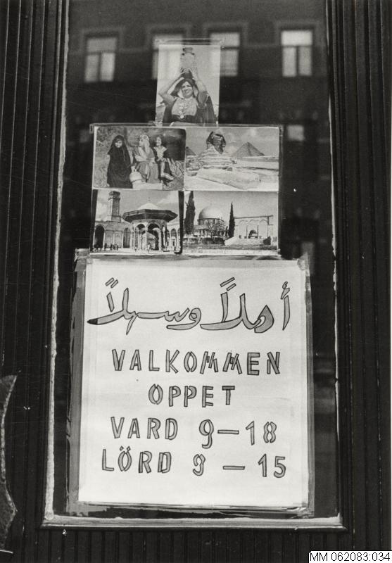 MM 062083:034 :: butiksdörr, butiksdörrar, skylt, skyltar, öppettid, öppettider, affär