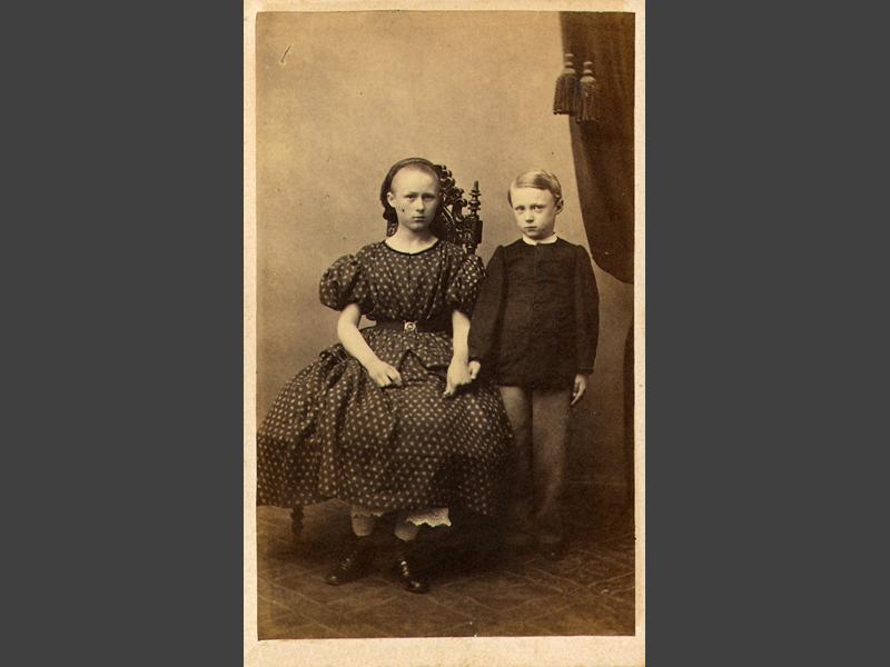 Visitkortsfotografi. Porträtt av syskonen Alma och Gustaf Åberg, sedermera konstnär.