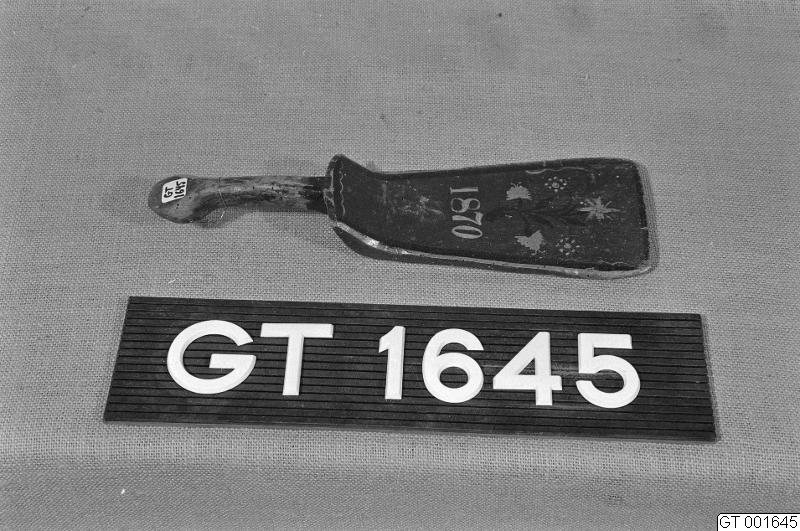 Platt klappeträ, bredare nedtill med vinkling mot det uttäljda