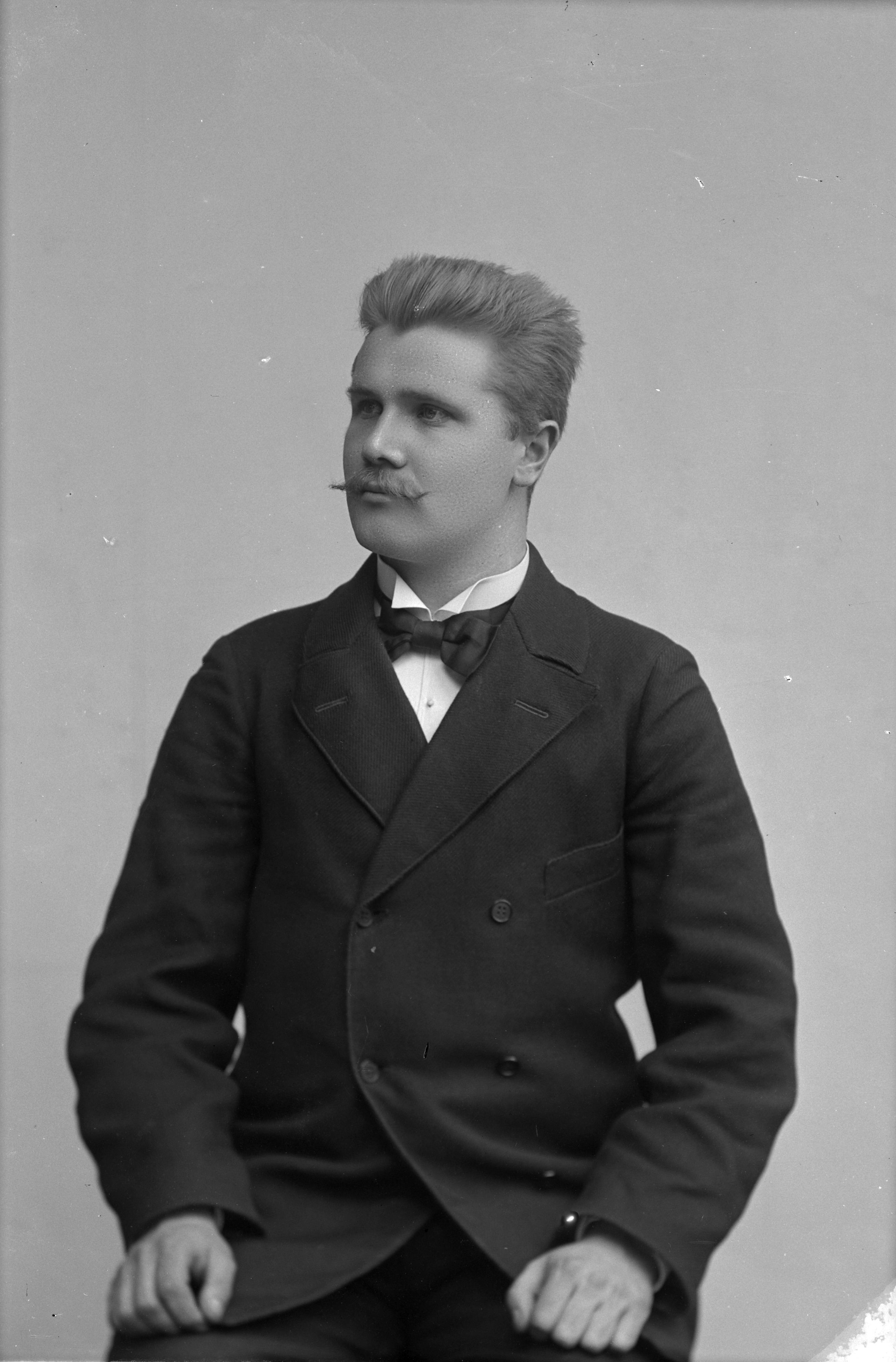 Porträtt i halvfigur av högskolestuderande V. Ljungfors.