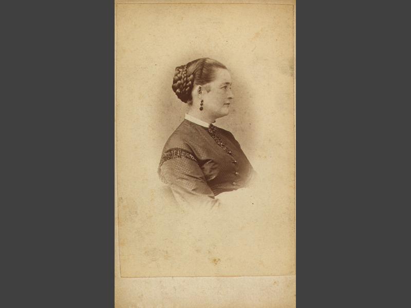 Visitkortsfotografi. Porträtt av operasångerskan Anna Maria Strandberg, gift Bergman.