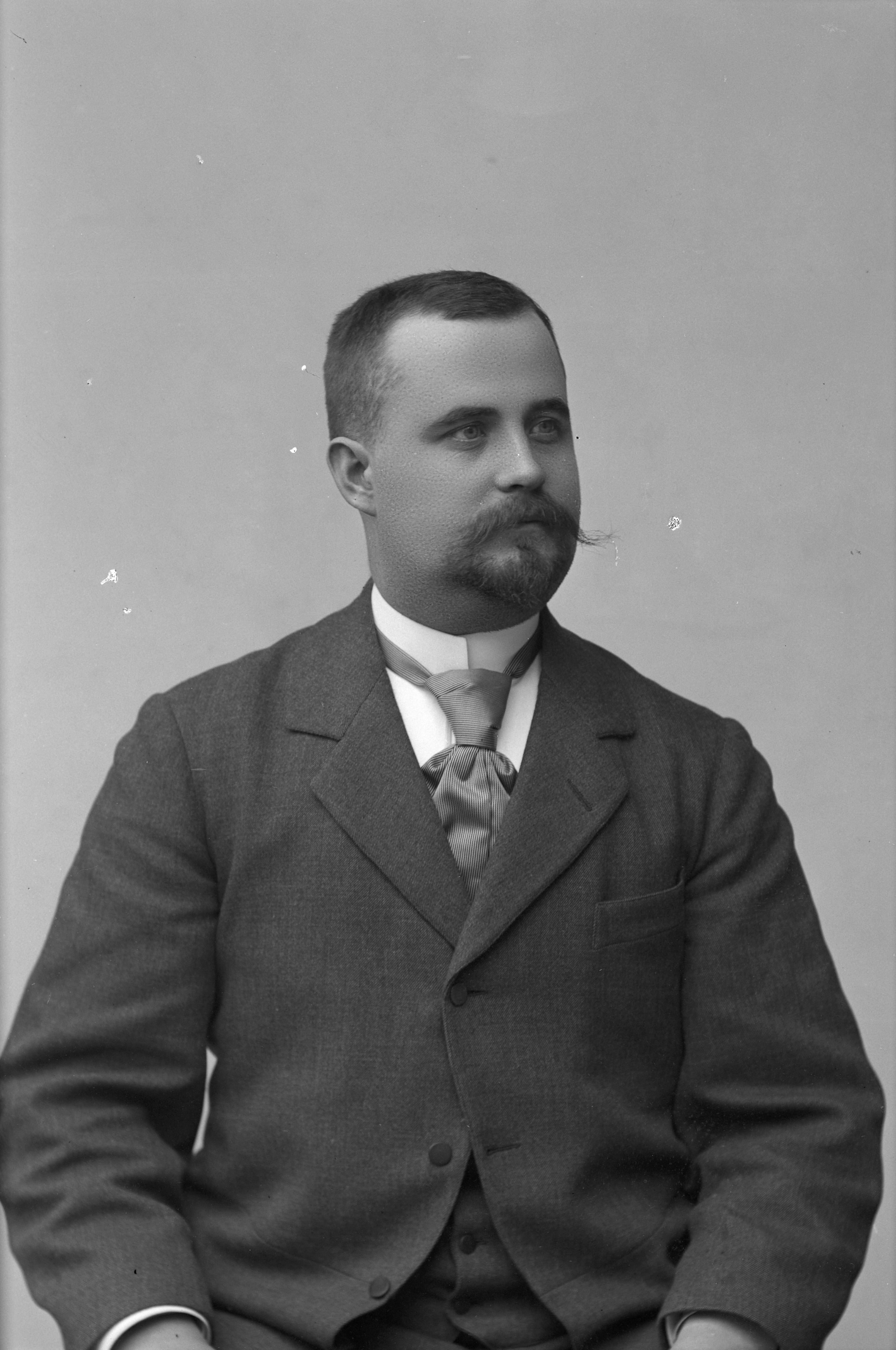 Porträtt i halvfigur av folkskollärare Emil Löfdahl i Stora Hammar.