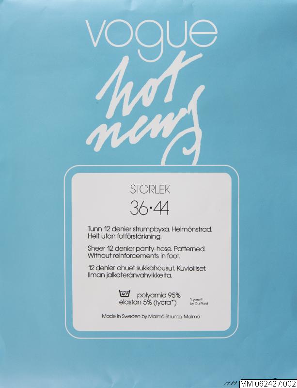 Påskrift framsidan: vogue hot pants strumpbyxa.