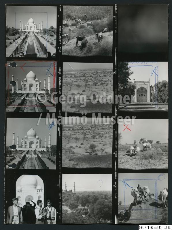 GO 195602:060 :: damm, jordbruk, man, oxe, tomt, trossystem, trädgård, turist, ungdom, storstäder, dragdjur, herde, plöjning, minnesmärke