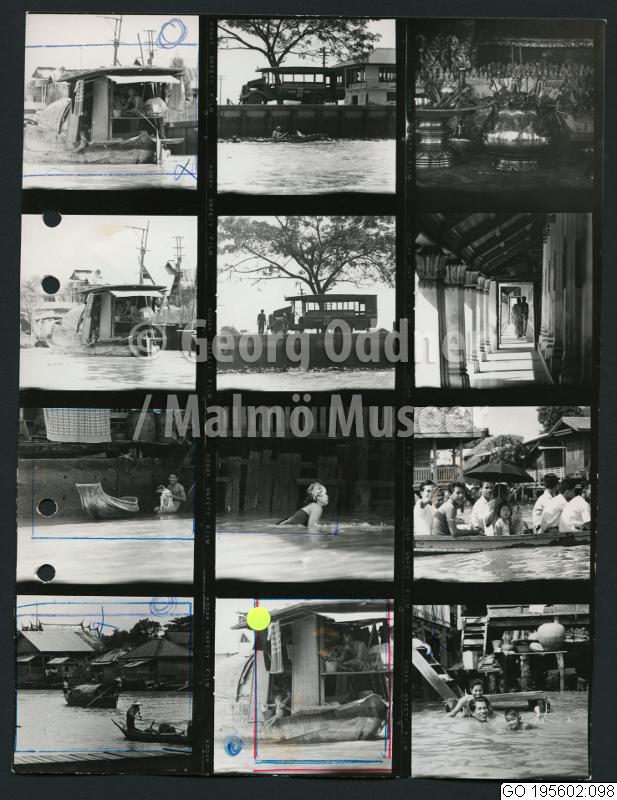 GO 195602:098 :: barn, bostäder, båt, hund, kroppsvård, kvinna, man, bad, brygga, kaj, simma, storstäder