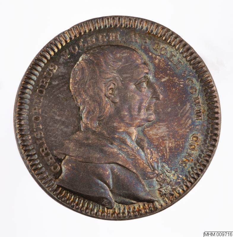 Minnesmedalj. Kristoffer Polhem, kommerseråd, uppfinnare, född 18/11 1661, död 31/8 1751.