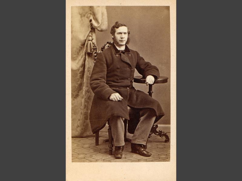 Visitkortsfotografi. Porträtt av folkskollärare Hans Johan Nilsson.