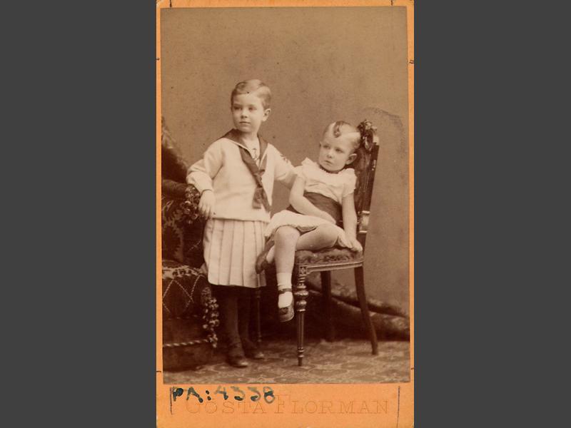 Visitkortsfotografi. Porträtt av de svenska prinsarna Gustav Adolf och Vilhelm.