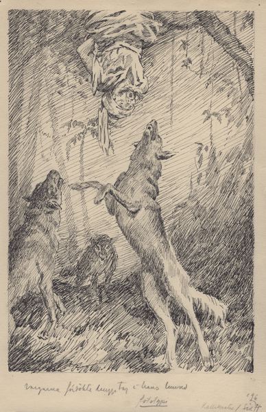 Text under bilden skriven med blyerts: "Vargarna försökte hugga tag i hans huvud."