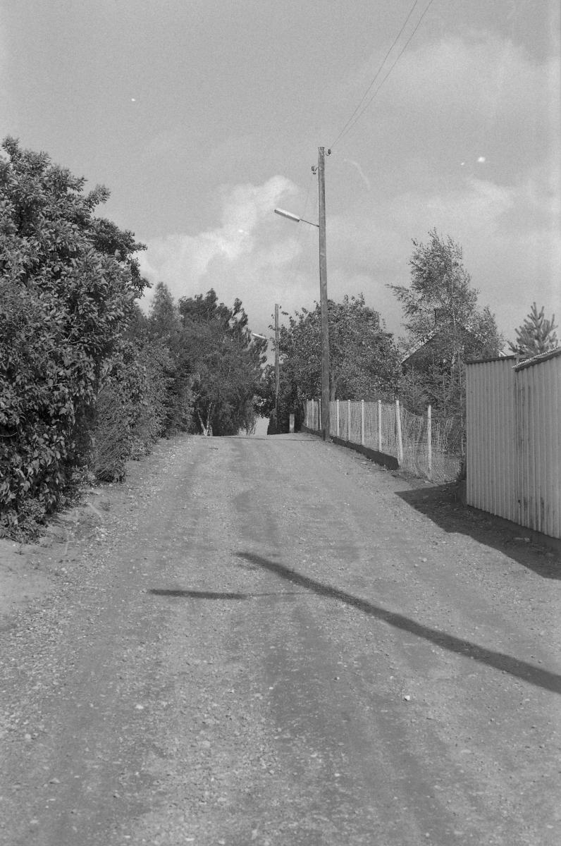 Utomhusbild som visar en gränd i Toarp med staket och byggnader.