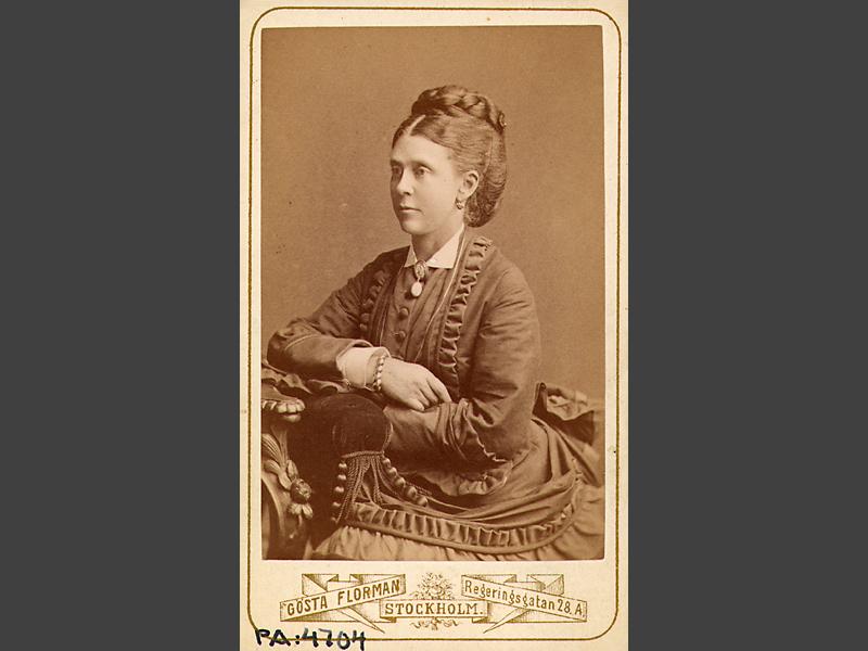 Visitkortsfotografi. Porträtt av Mary Bell Scott, gift 1:a g. Ehrensvärd, 2:a g. Åkerhielm, 3:e g. Virgin.