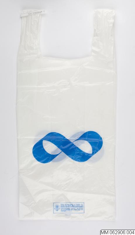 - Varukasse från varuhuskedjan Konsum. Vit med logotyp i form av en så kallad Konsumkringla i blått. På påsens nedre del står: Tänk på att täta påsar kan vara farliga för barn! Står även bland annat - att den är stark nog att användas som shoppingbag flera omgångar innan den till sist blir använd som soppåse.