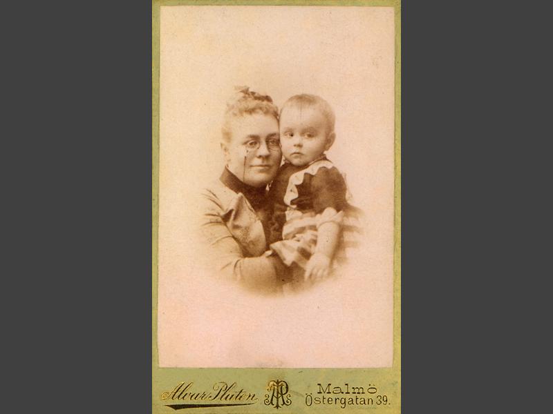 Visitkortsfotografi. Porträtt av Hedvig Siegbahn, gift Lindgren, med ett av sina barn.