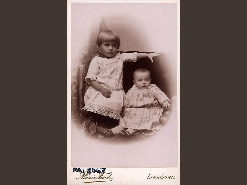 Visitkortsfotografi. Porträtt av två av barnen Lindgren, barn till fil.dr. Carl Ludvig Lindgren och Hedvig Siegbahn.