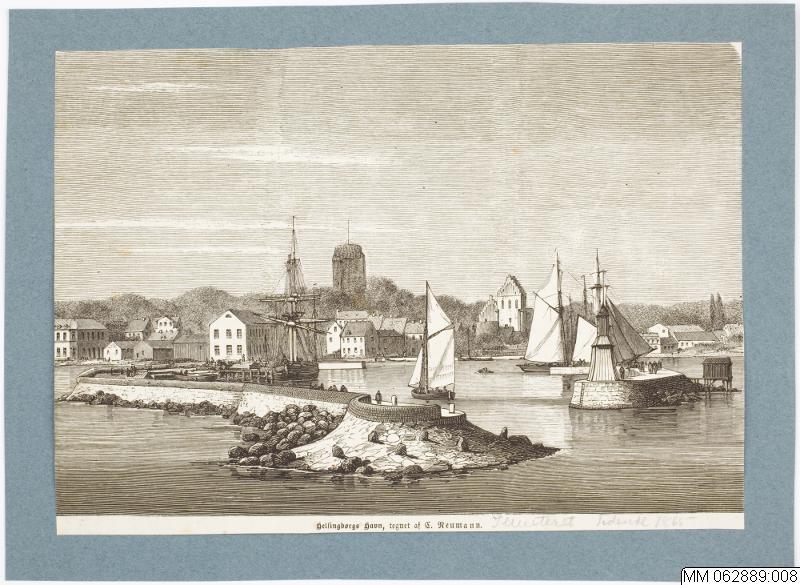 En illustration av Helsingborgs hamn från den danska tidningen Illustreret Tidende nr 307 13/8-1865 s.372