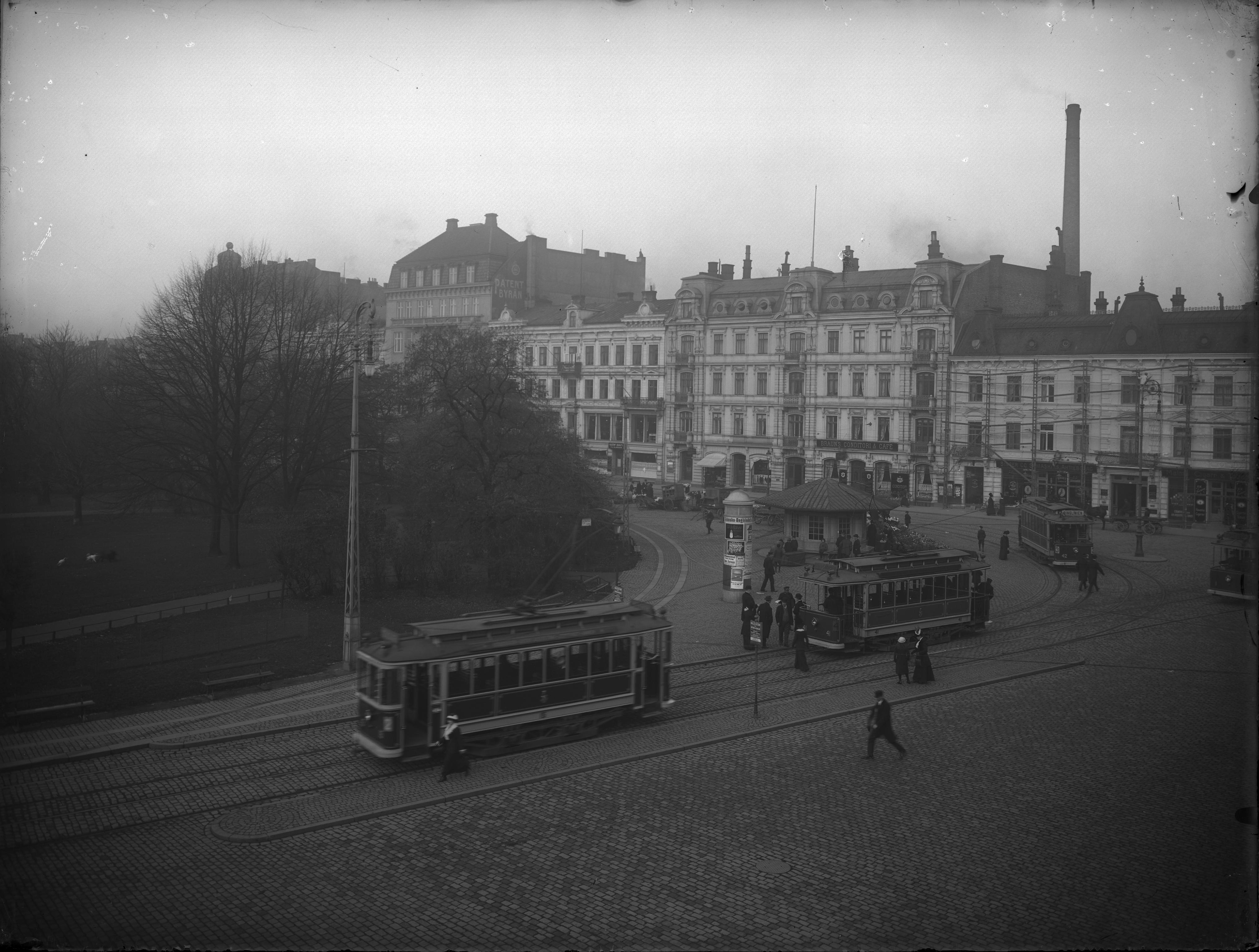MM 062091:045 :: torg, spårvagn, spårvagnar, hus, byggnad, byggnader