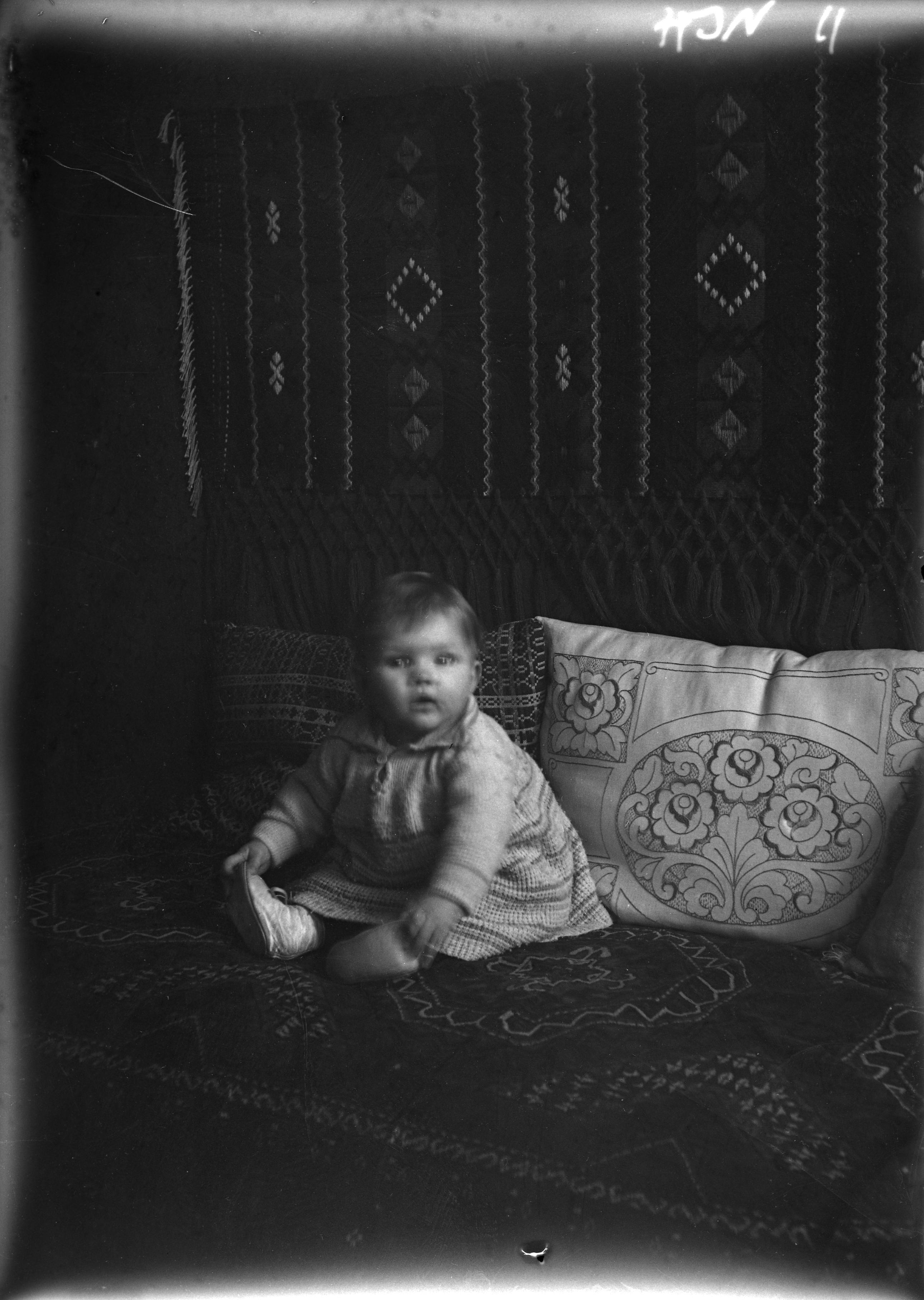 "Anne-Marie Jönsson cirka 7-8 månader. Kortet taget hos farmor och farfar av min far."