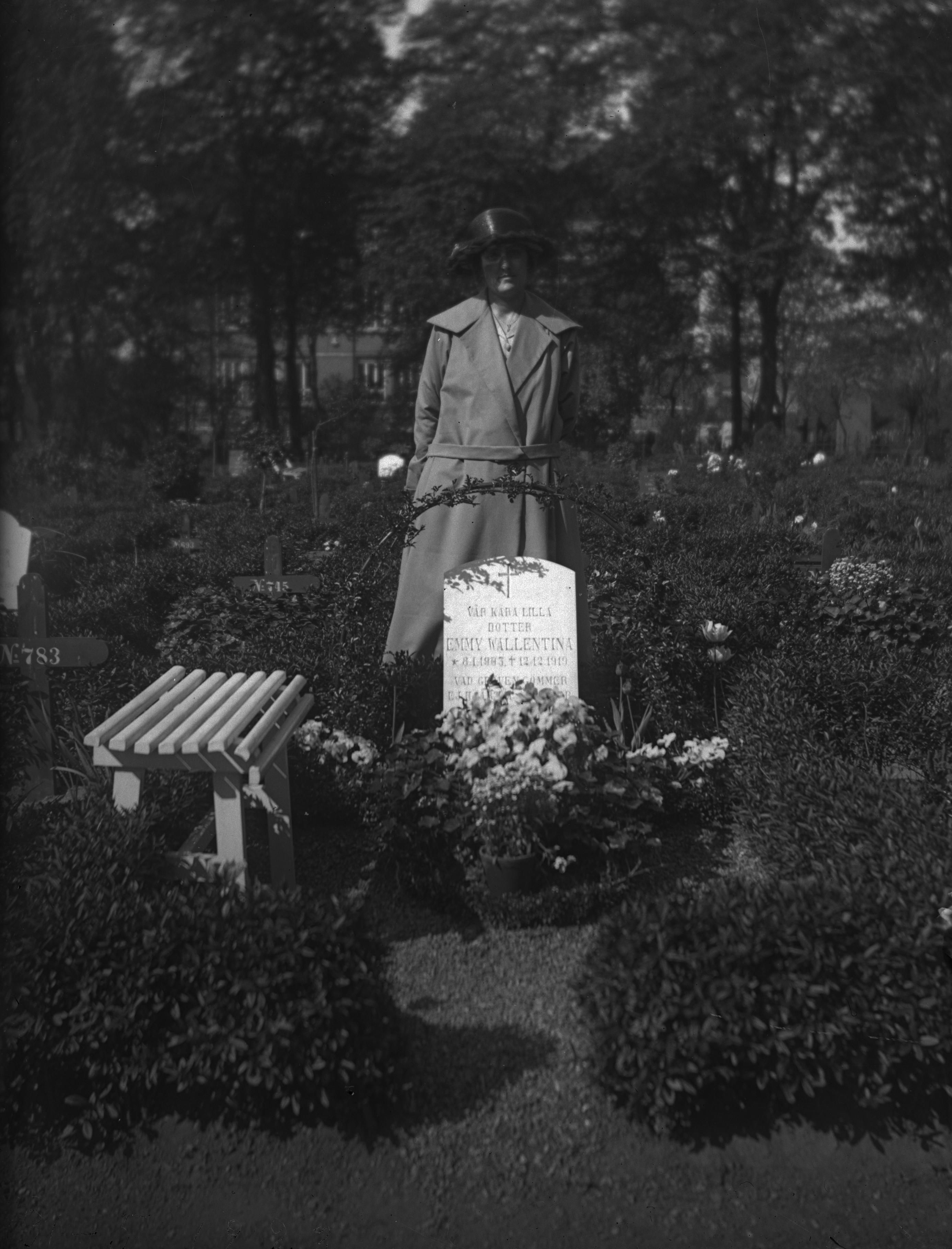 Kyrkogård, kvinna vid graven, (Emmy Wallentine d. 1919).