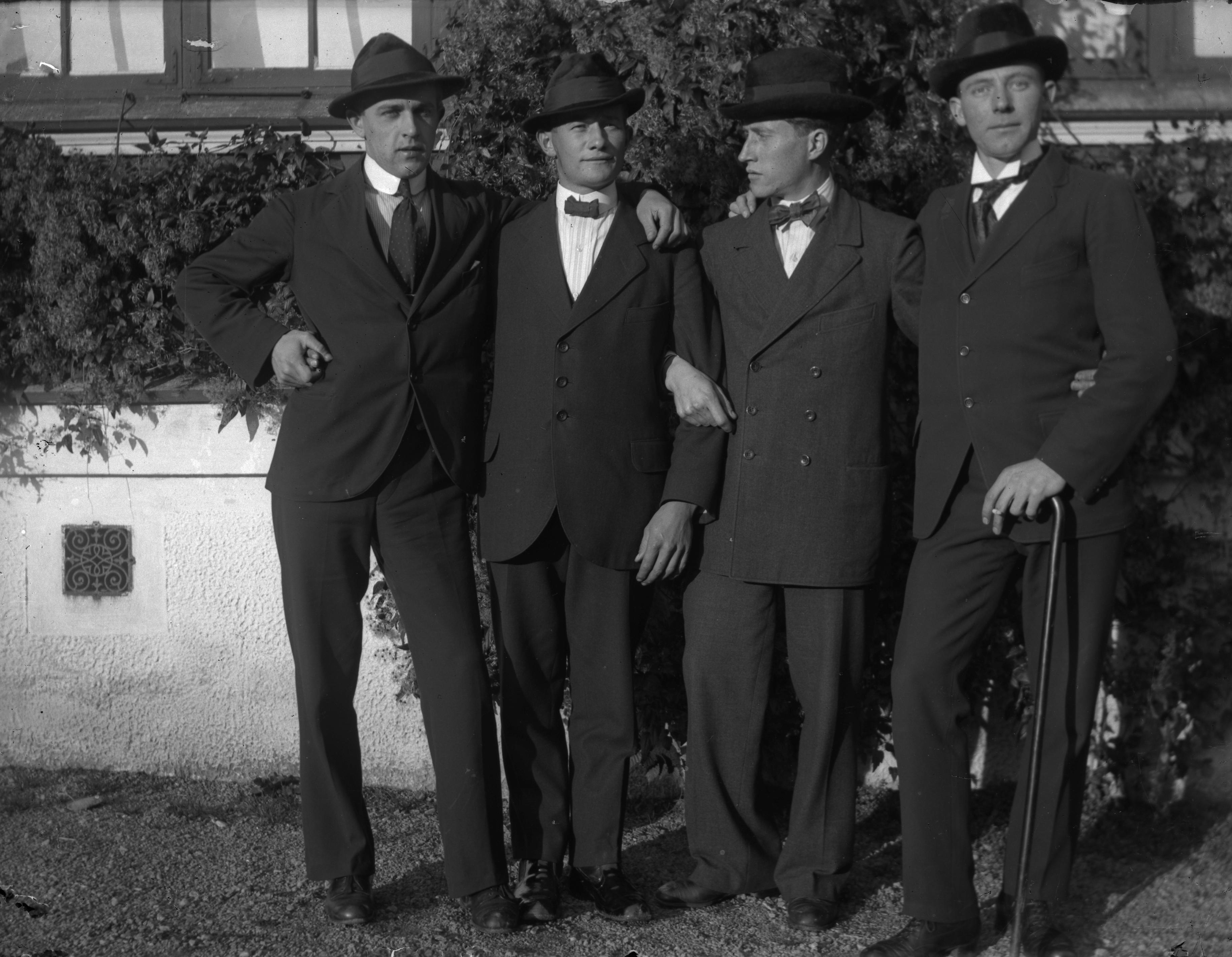 Gruppbild fyra män, exteriör.