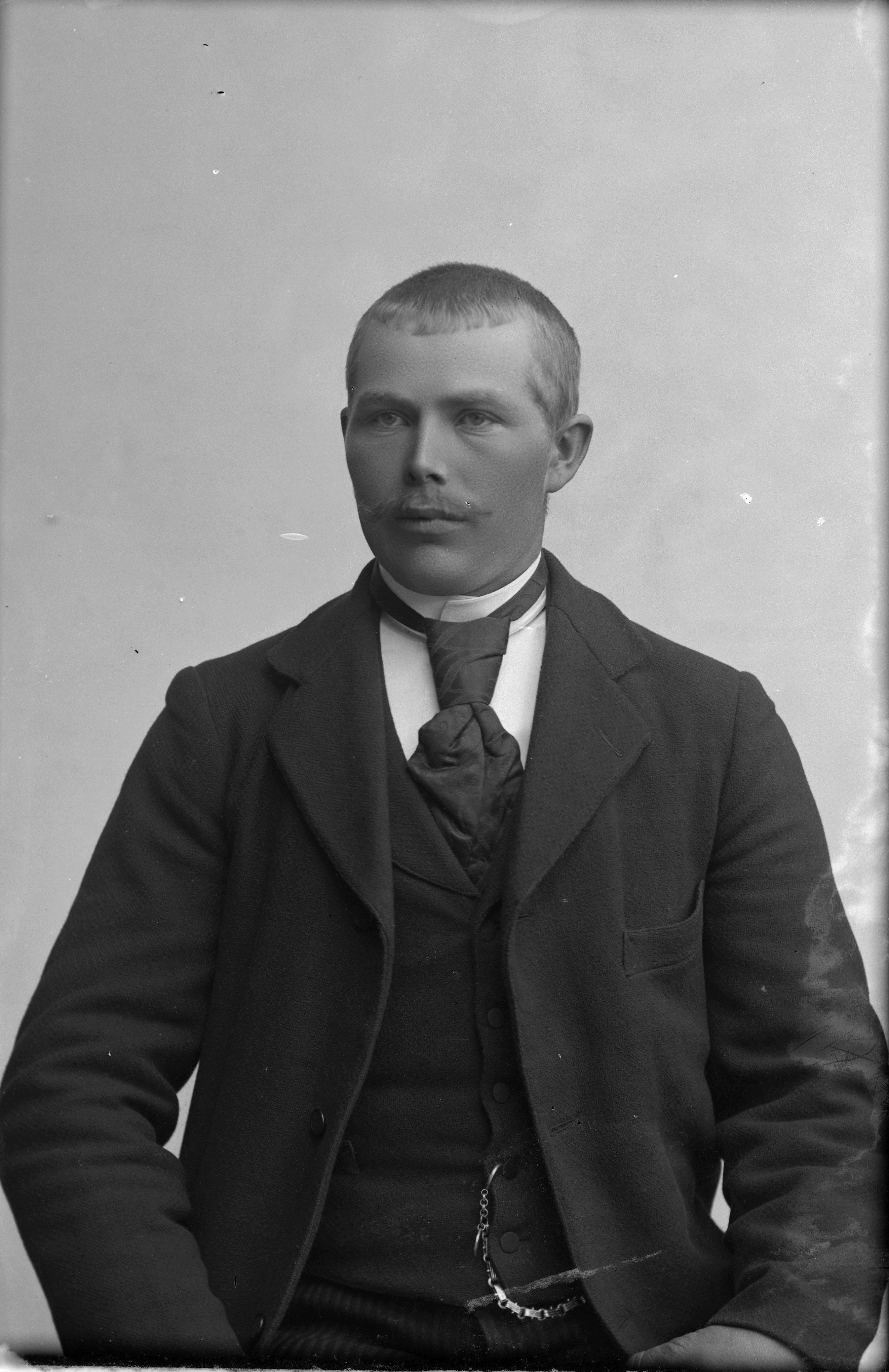 Porträtt i halvfigur av Nils Nilsson vid Klagstorps Kalkbrott.